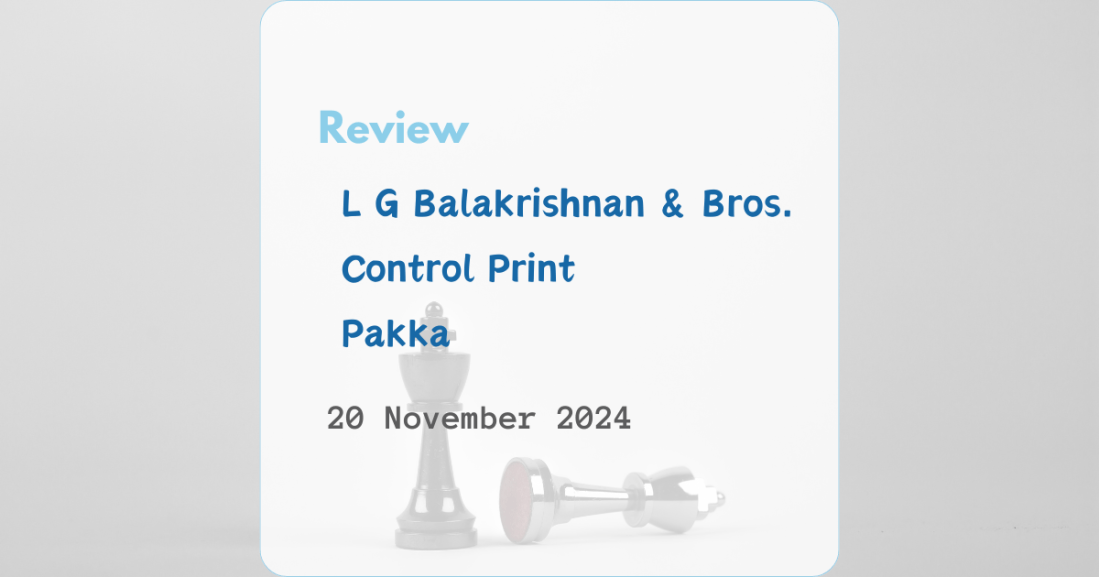 Review – L G Balakrishnan & Bros., Control Print, Pakka